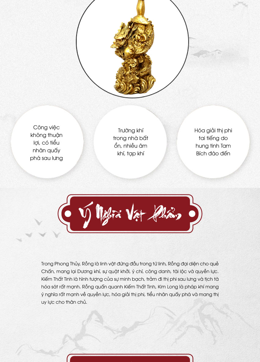Kim Long được thiết kế dựa trên hình tượng Thanh Long quấn kiếm Thất Tinh là biểu tượng cho quyền lực, hóa sát, kỵ tà, hóa giải thị phi, tiểu nhân quấy phá, kiện tụng trong công ty, cửa hàng , nhà ở